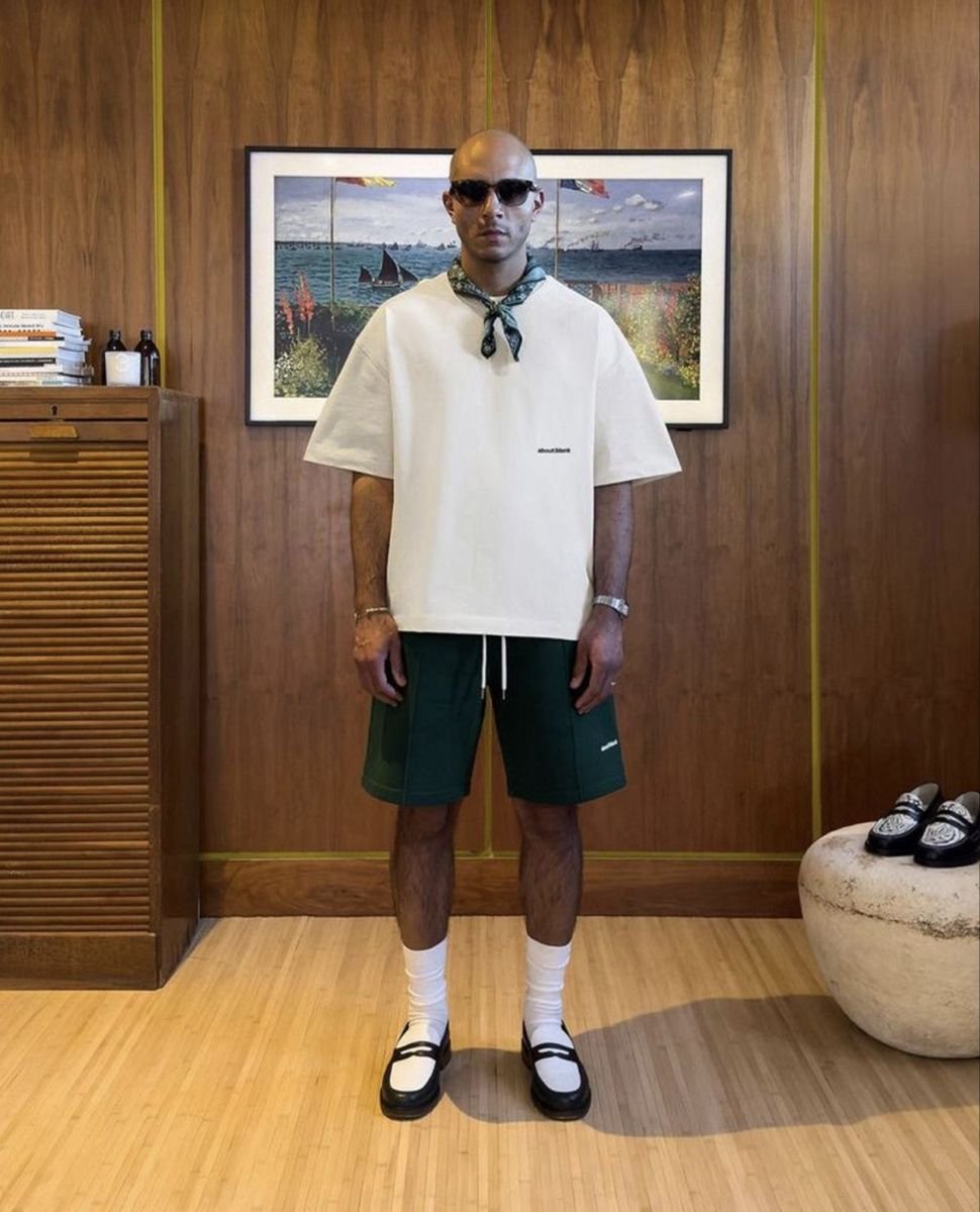3. Tuck It Right - Try a front tuck or side tuck to shape your look. This trick adds structure and keeps the oversized Fermi tee from overwhelming your frame.